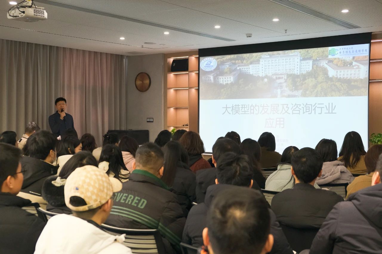 本次培訓有幸邀請到華中科技大學電子信息與通信學院張小剛老師授課。張老師從大模型發(fā)展現狀、大模型應用關鍵技術及大模型在咨詢行業(yè)咨詢應用等方面展開分享,并為大家?guī)砹艘粓龈韶洕M滿的培訓。